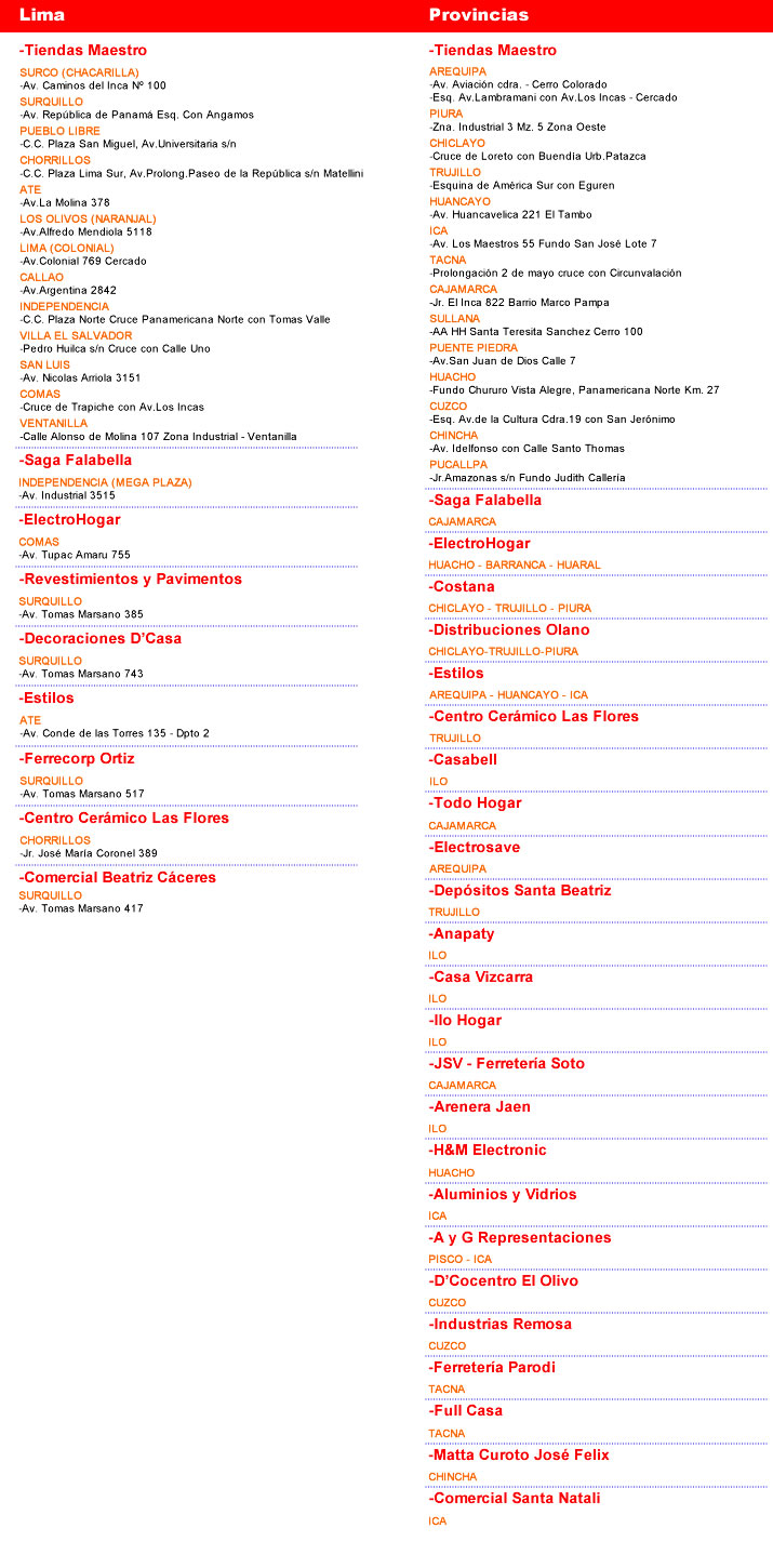 Central telefónica : (51) (1) 252-1954 / 251-4792